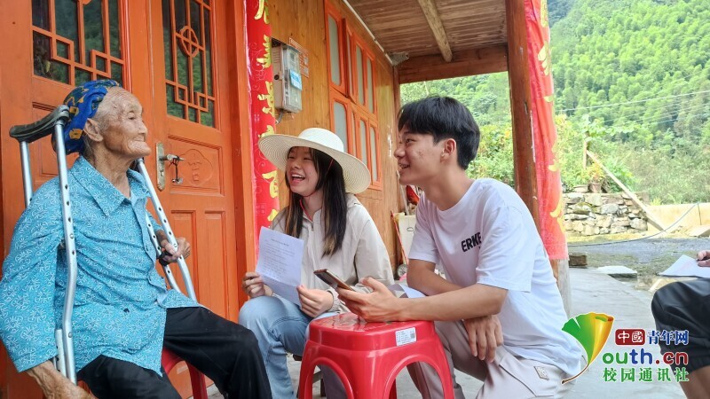 和平村地处南山国家公园,交通不便。为了解决生计问题,村子里的青年大多选择外出打工,村中的空巢老人问题较为严重。沿着蜿蜒的乡间小道,服务队成员们走访了许多老年人,了解他们的生活状况,为他们带去爱与陪伴。在一户空巢老人家中,服务队发现其家中物品多已陈旧,但地面干净整洁,各式家居摆放井然有序。在与老人交流中得知,老人今年已有94岁,虽然走路不太方便,但身体依旧健好。服务队成员们耐心地倾听老人讲述自己的经历,随后又下田帮助其摘玉米、拔草,给予她力所能及的关爱与陪伴。临别时,老人开心之余,亲自唱了一首苗族山歌来表达感激之情。