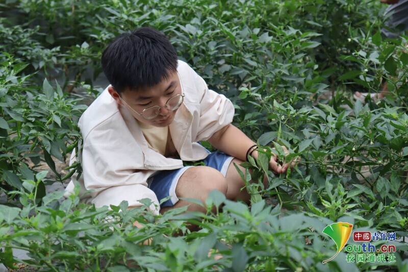 图为服务队采摘辣椒。中国青年网通讯员 程玉芳 供图